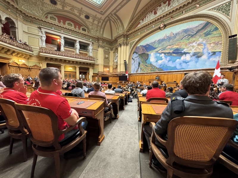 Erfolgreiche Modellflugpiloten wurden vom Bundesrat Martin Pfister im Bundeshaus empfangen