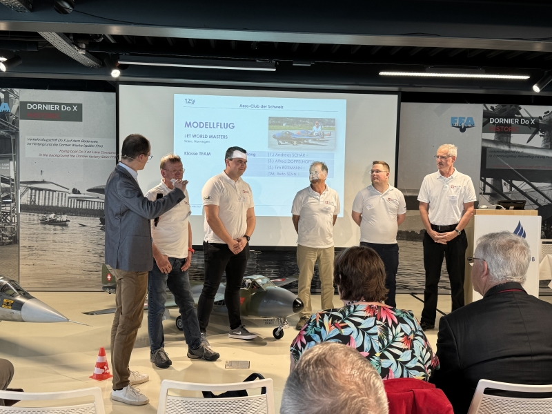 Die DV startete um 10 Uhr mit den üblichen Traktanden und wurde vom Präsidenten zügig durchgeführt. Die Themen gaben keinen Anlass für Diskussionen und wurden einstimmig angenommen. Anschliessend erfolgten die Sportlerehrungen die durch Michael Weinmann moderiert wurden, an der auch dieses Jahr wieder zahlreiche Modellflusportler geehrt wurden wie aus der Bildergalerie entnommen werden kann. Ebenfalls wurden die Ballonfahrer und Fallschirmspringer geehrt und ausgezeichnet für ihre sportlichen Leistungen im 2025. Unser lanjähriger Generalsekretär des Aero - Club Yves Burkhard wurde für seine vielen Aktivitäten zu Gunsten der Aviatik mit dem Paul Tissandier Diplom ausgezeichnet für dessen Übergabe extra zwei Ranghohe Vorstandsmitglieder der FAI (Fédération Aéronautique International) angereist waren.